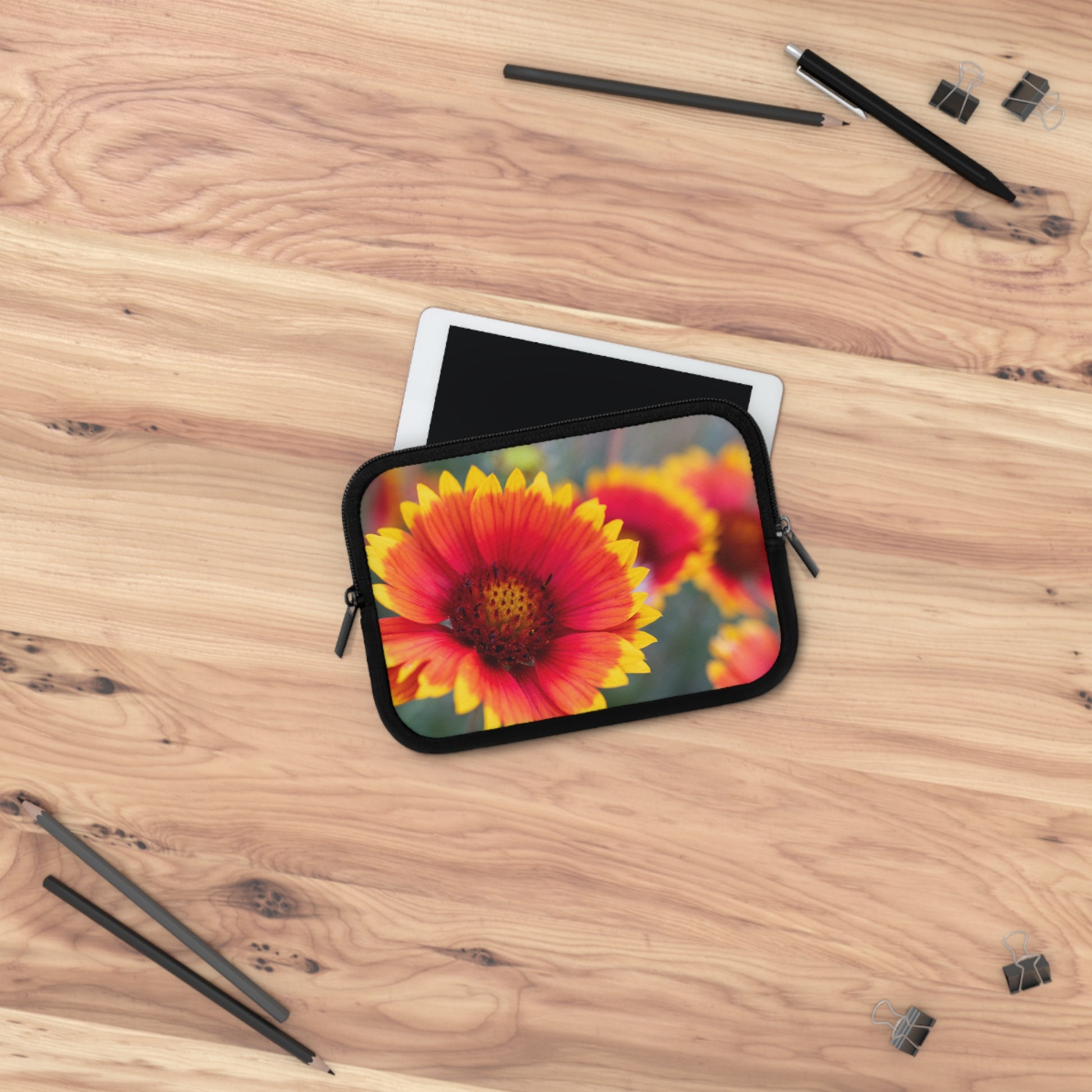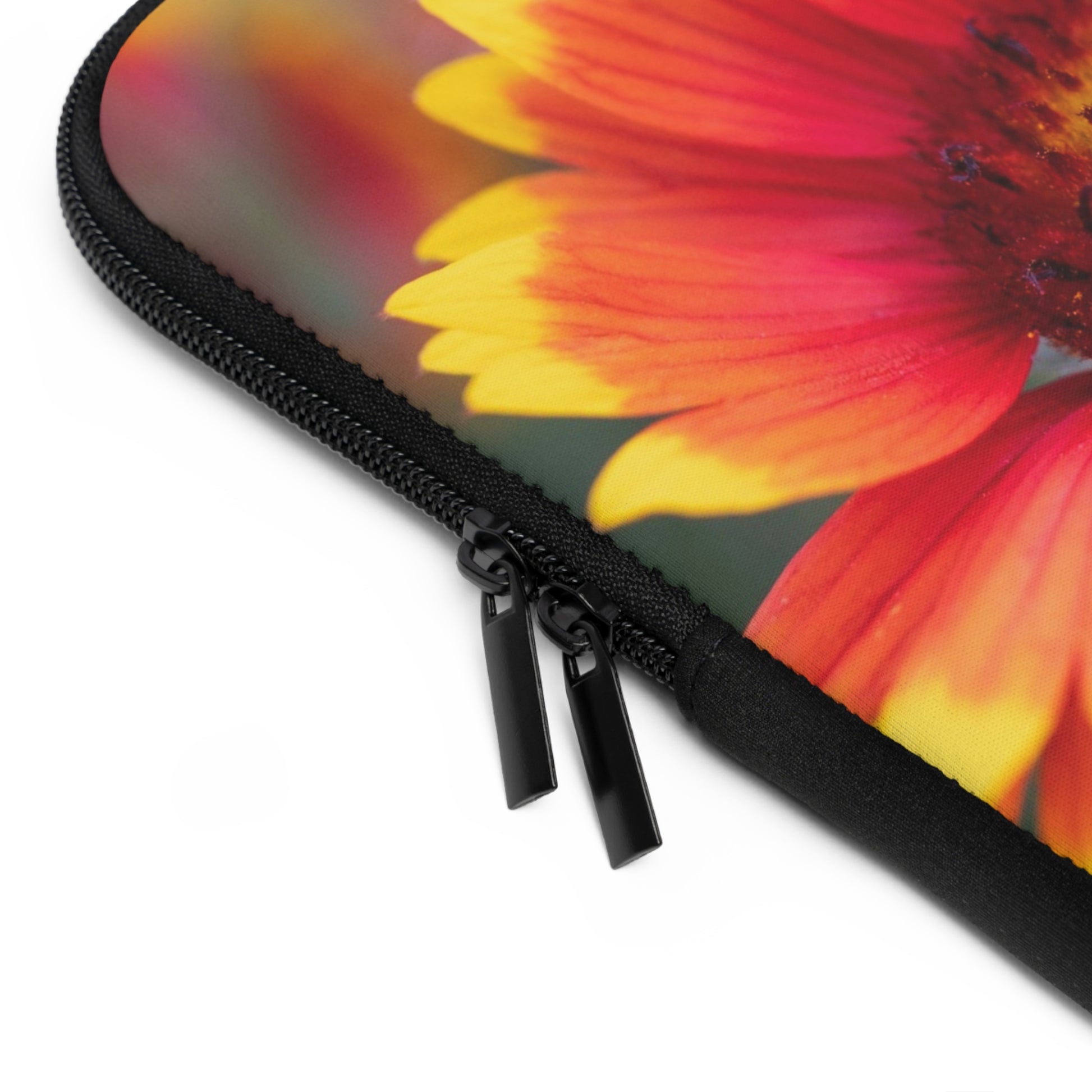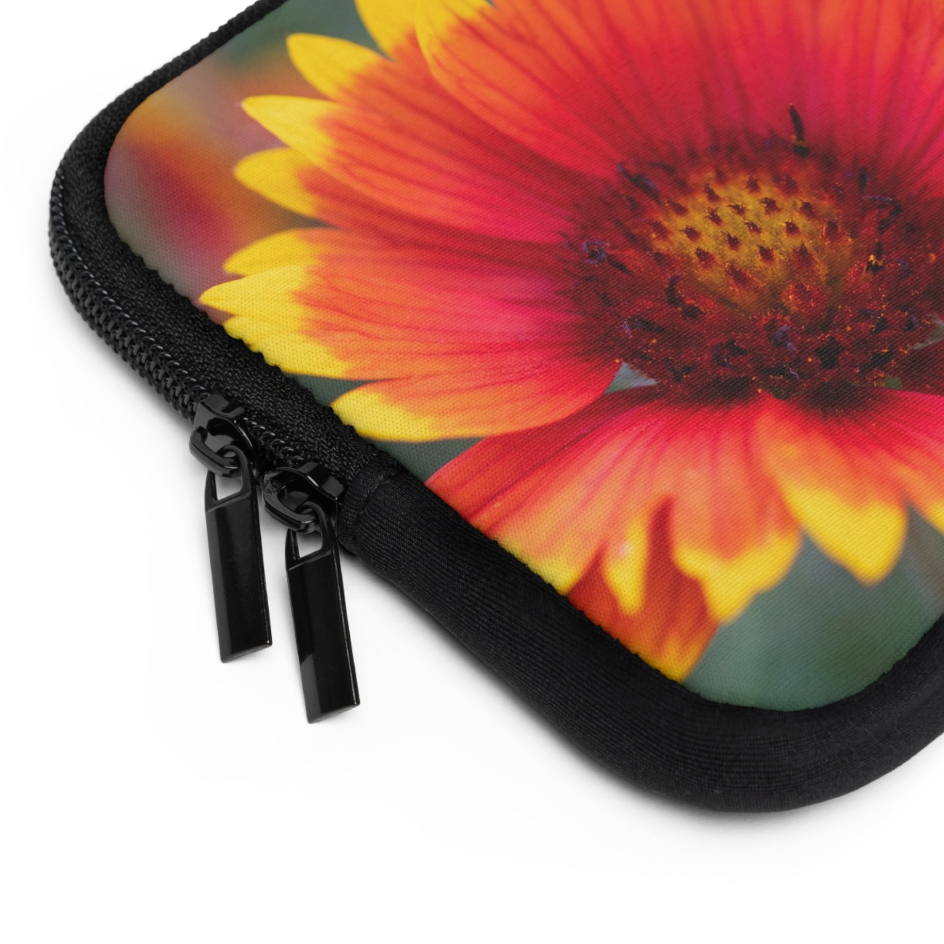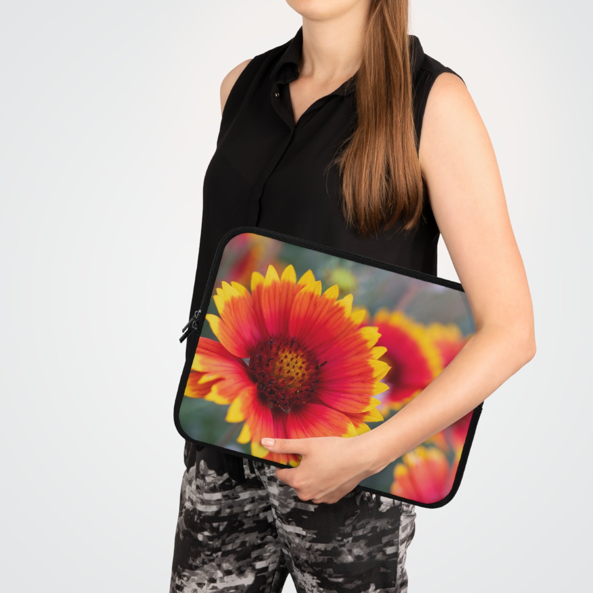 Floral Gaillardia Laptop Sleeve — Bright Red & Yellow Wildflower Protective Case