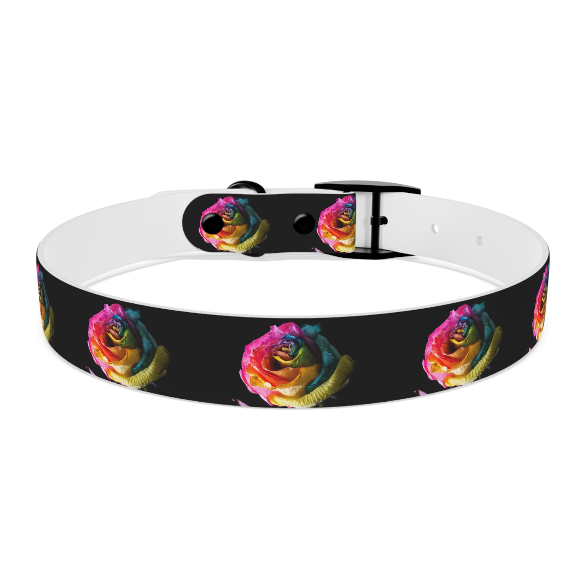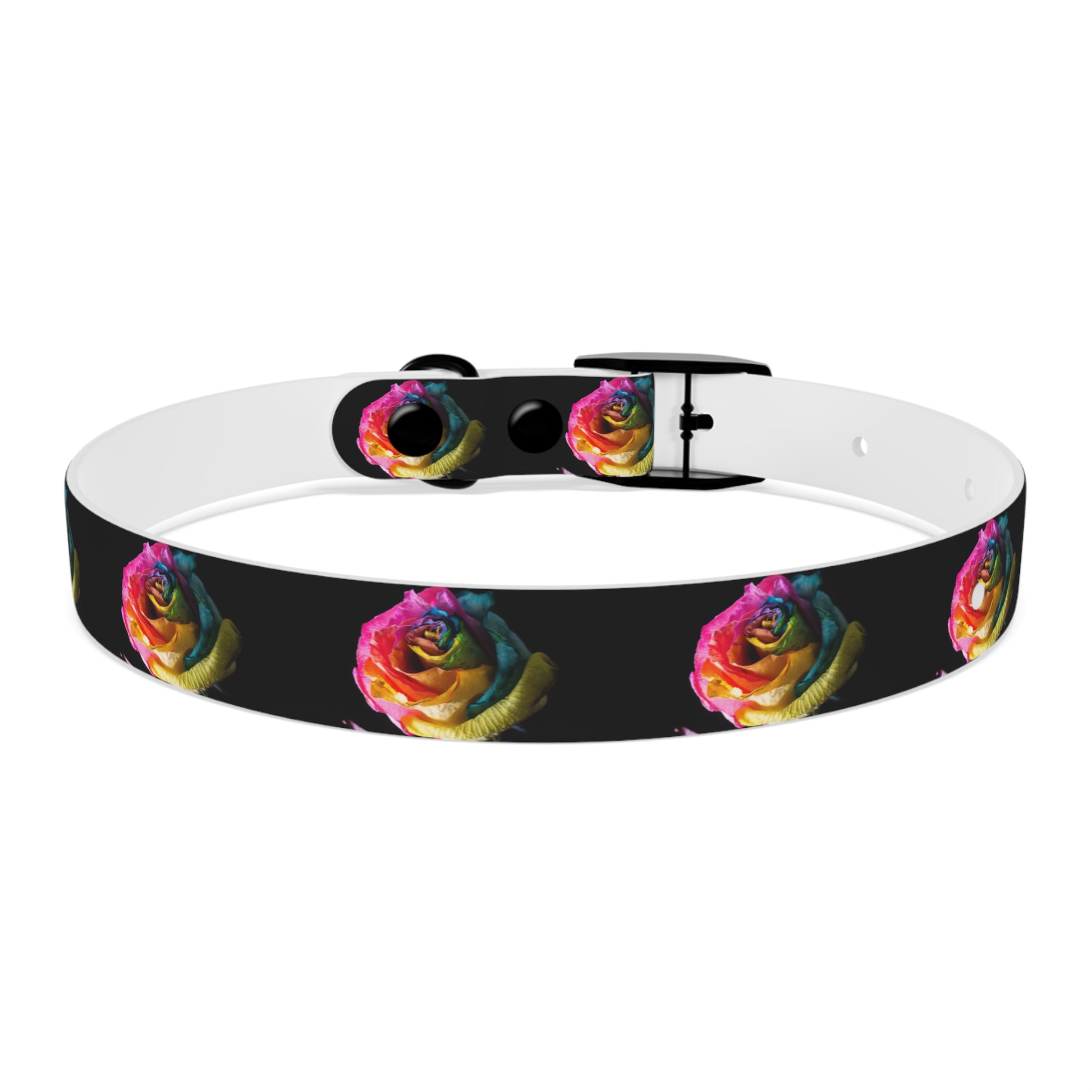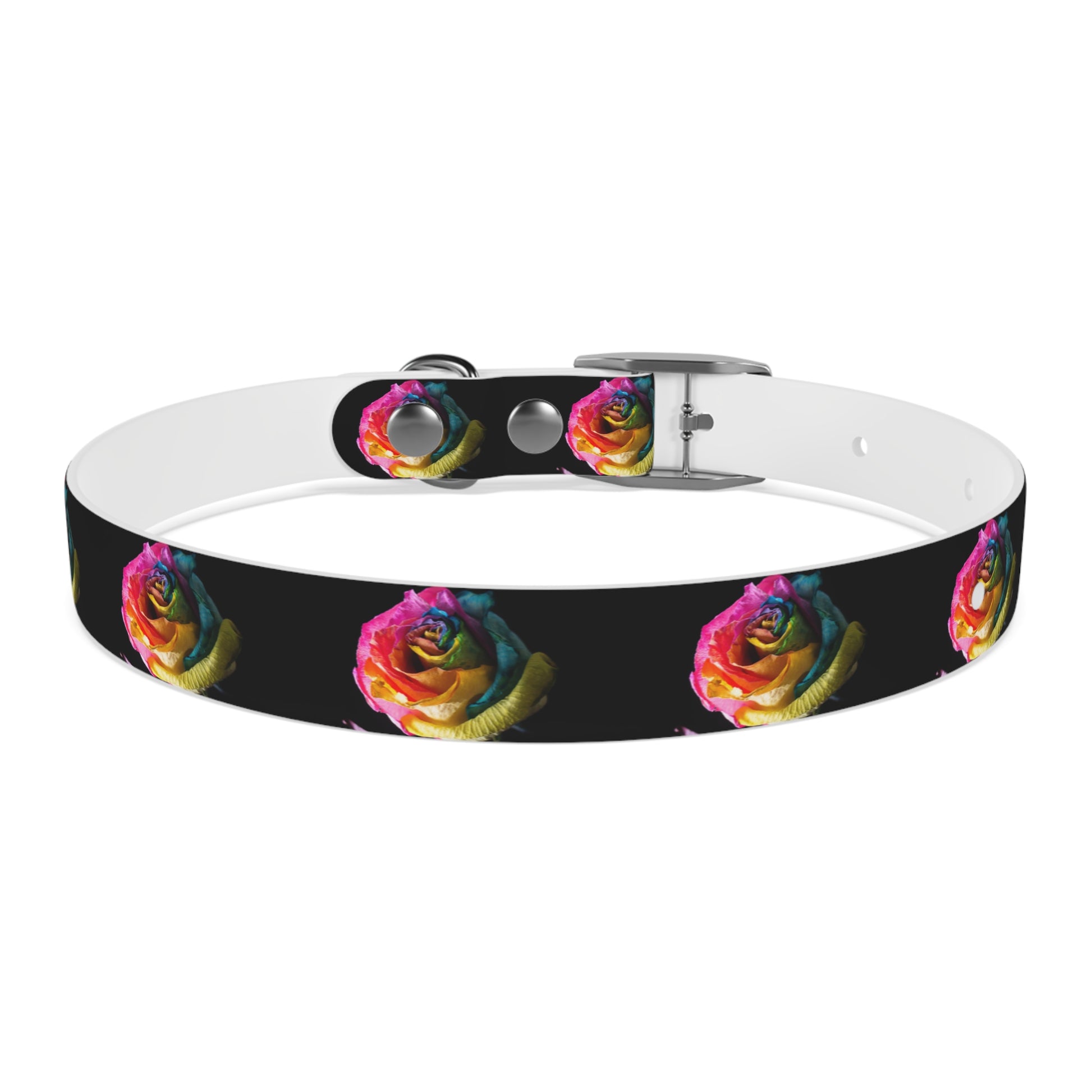 Rainbow Rose Dog Collar — Colorful Floral Pet Collar on Black