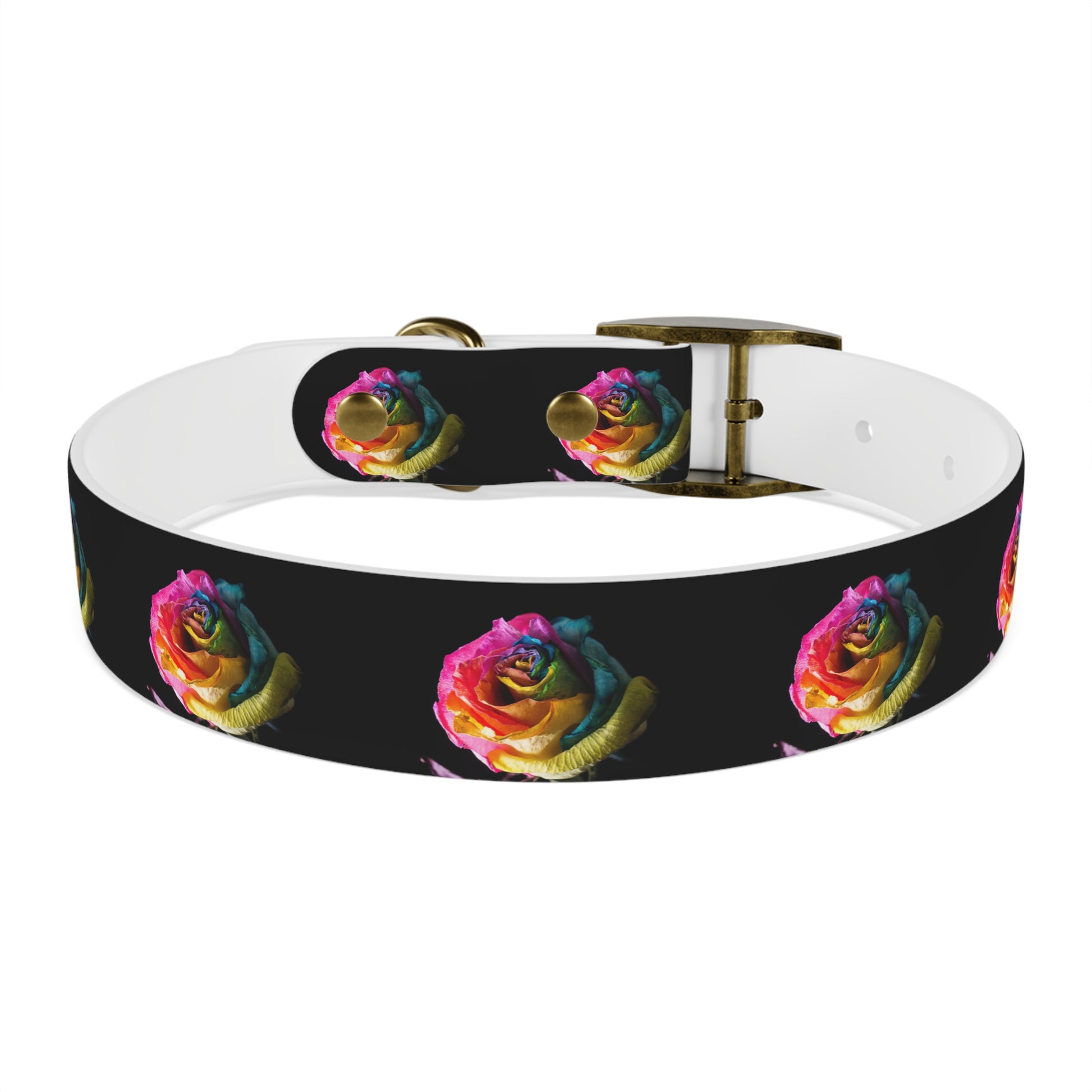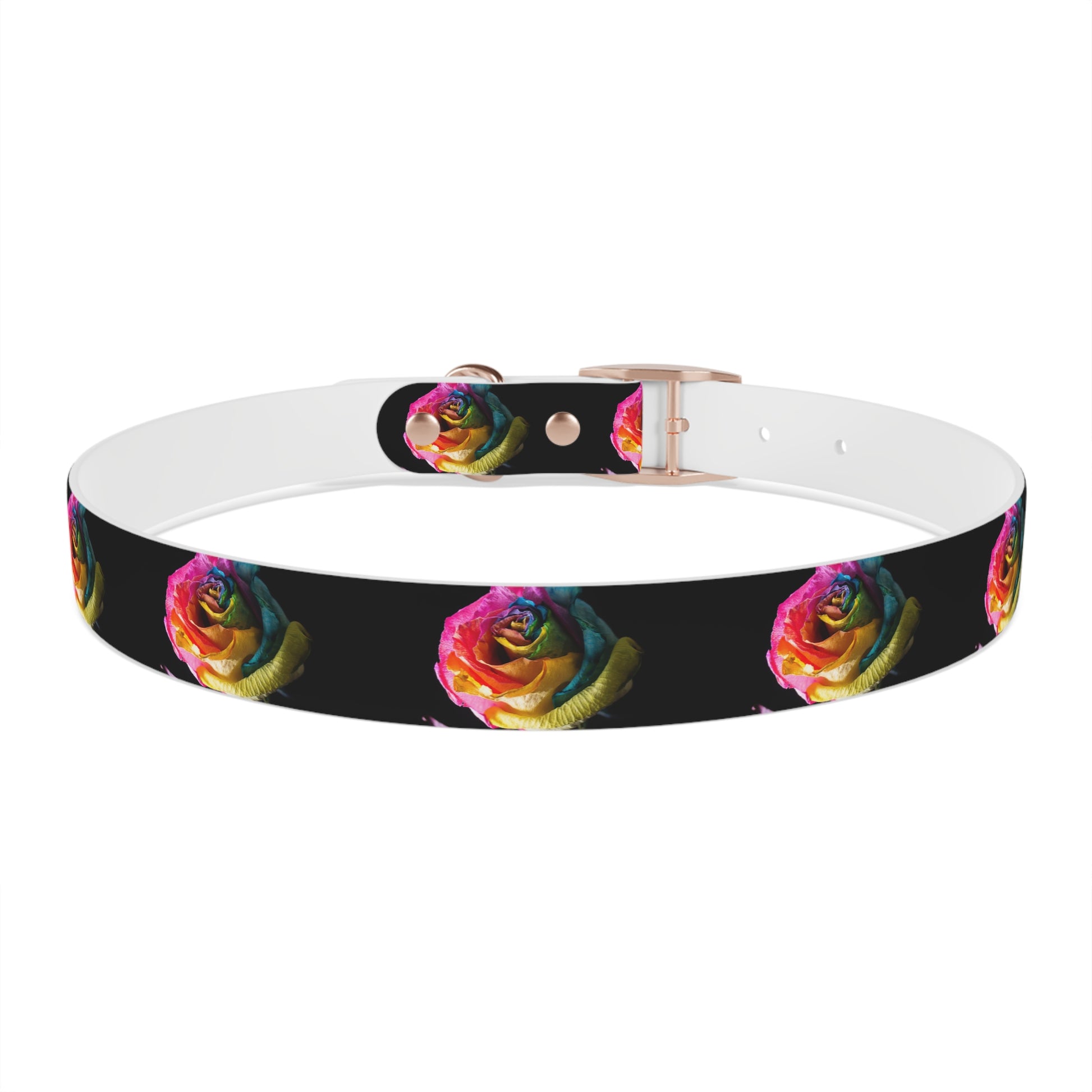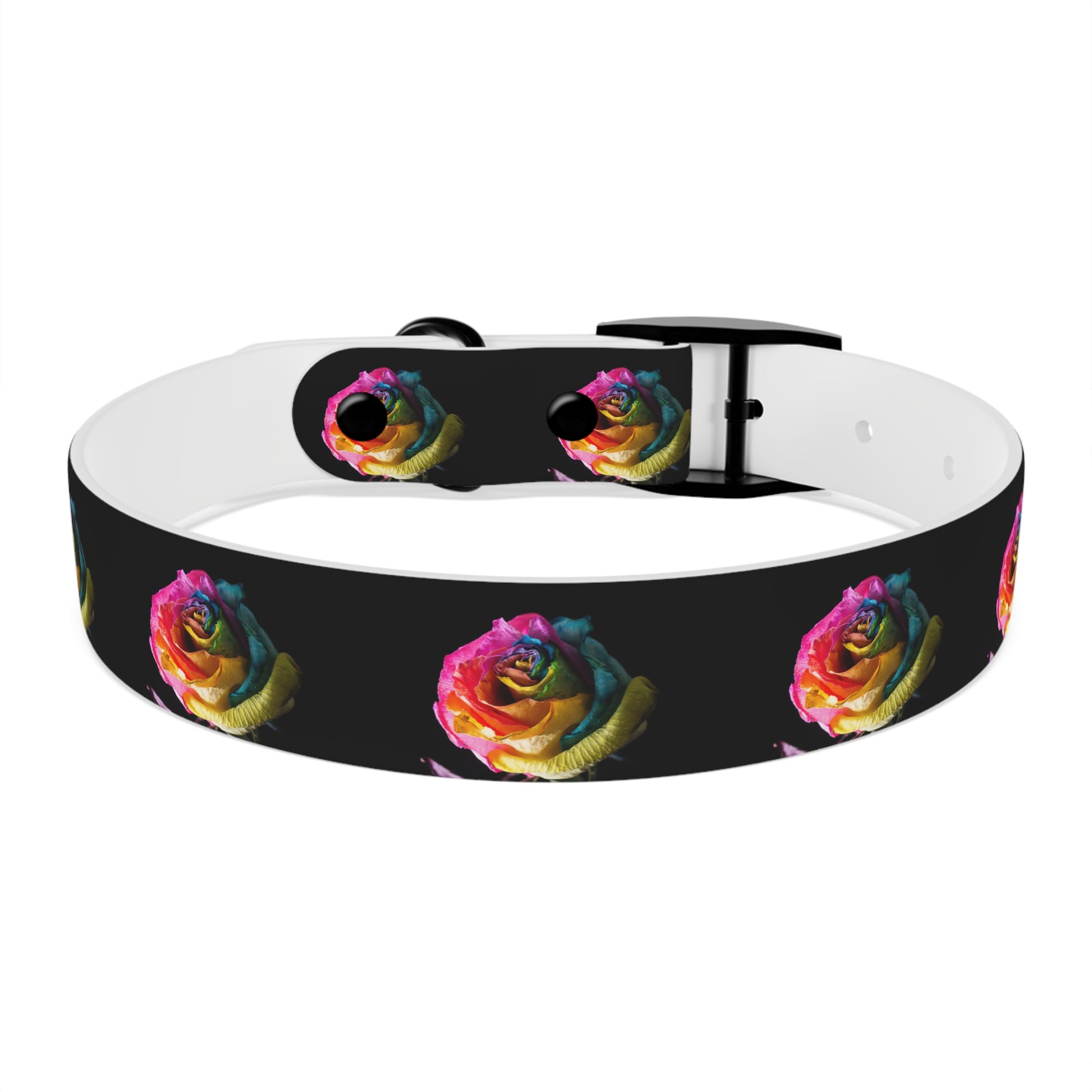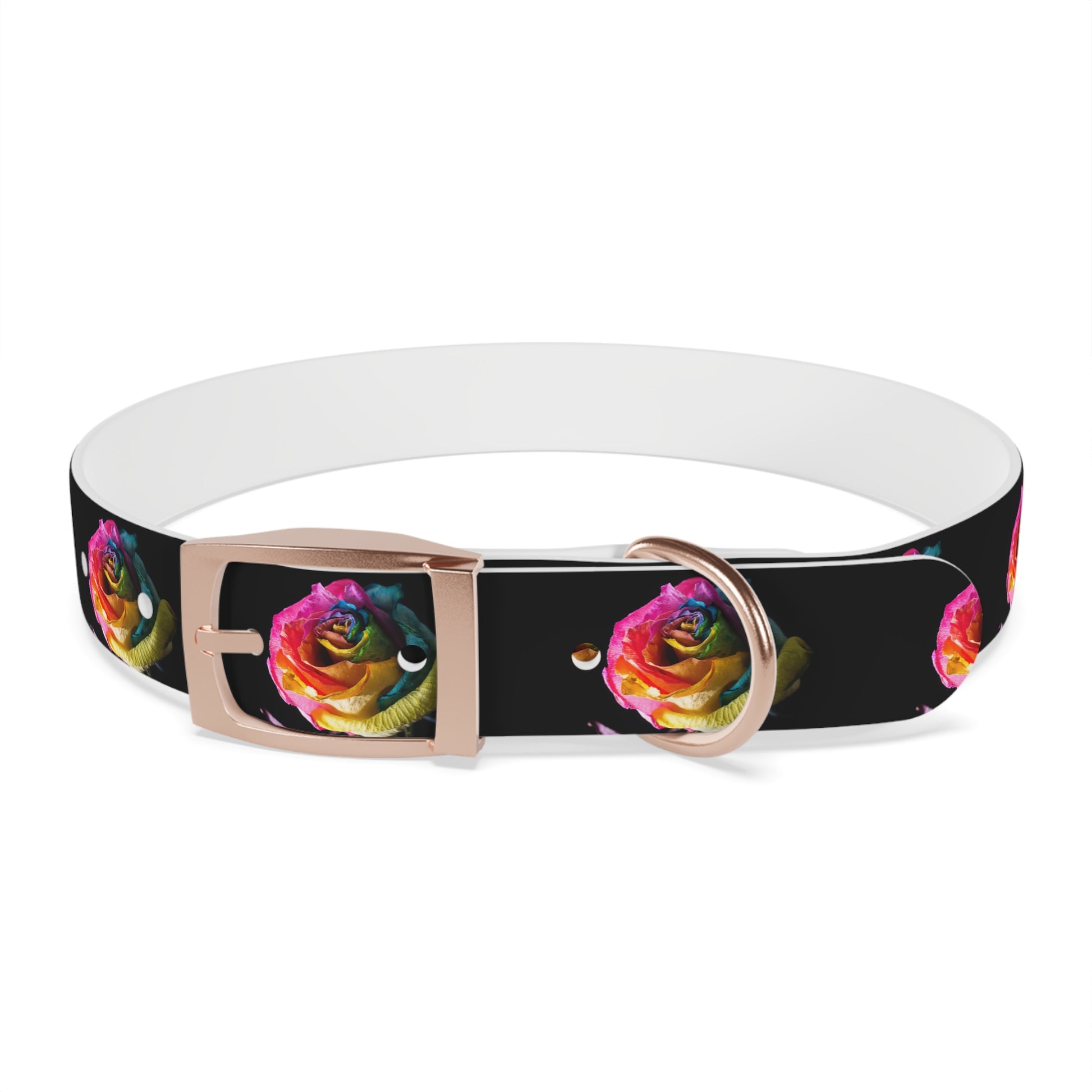 Rainbow Rose Dog Collar — Colorful Floral Pet Collar on Black