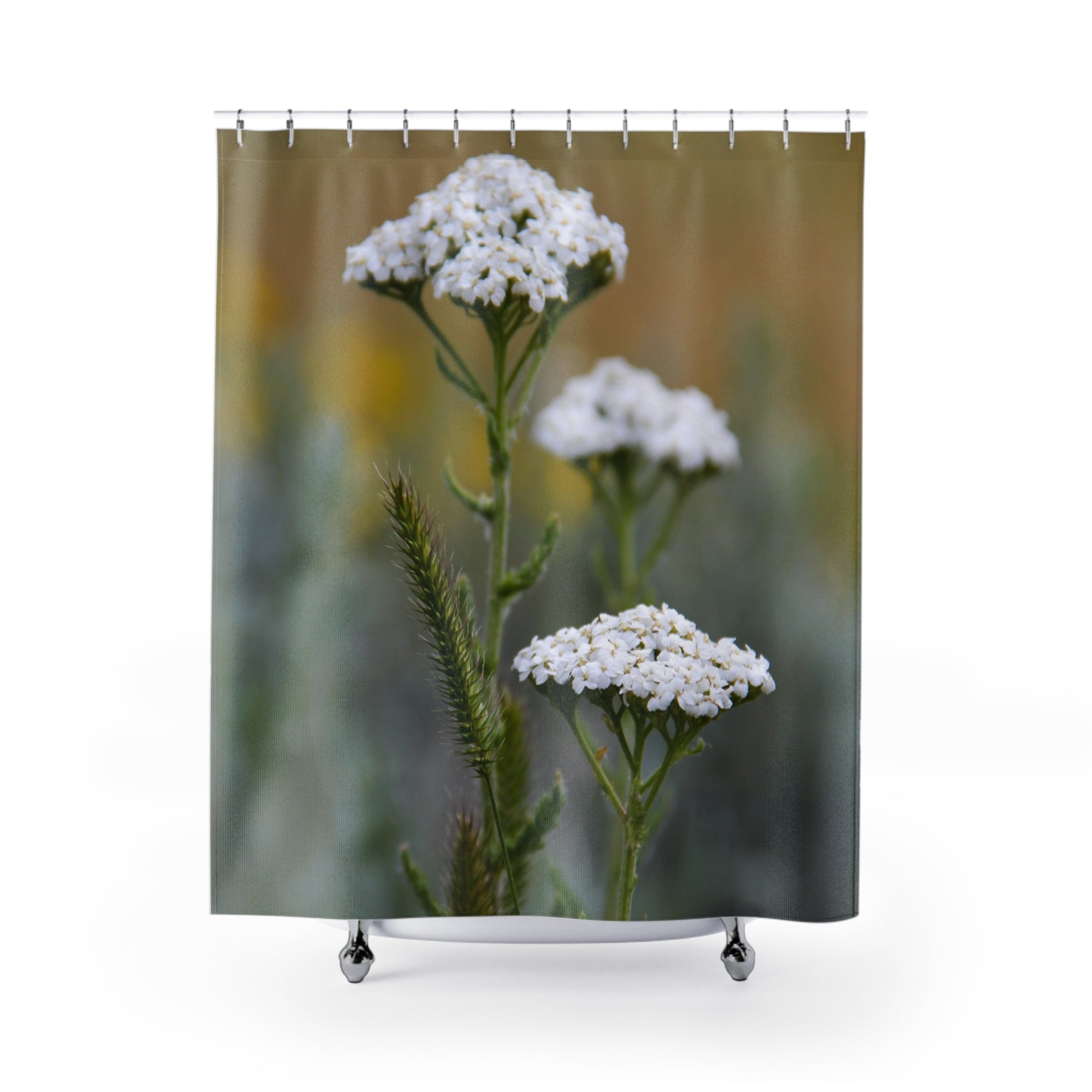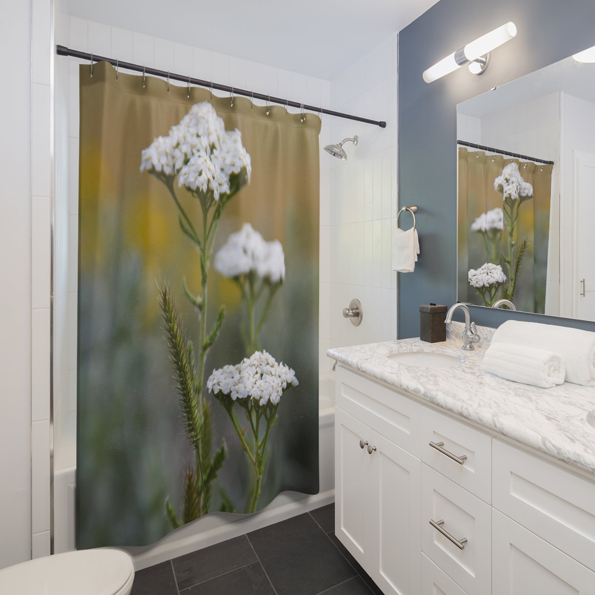 Shower Curtain — White Yarrow Floral Photo Print for Serene, Nature-Inspired Bathroom Décor