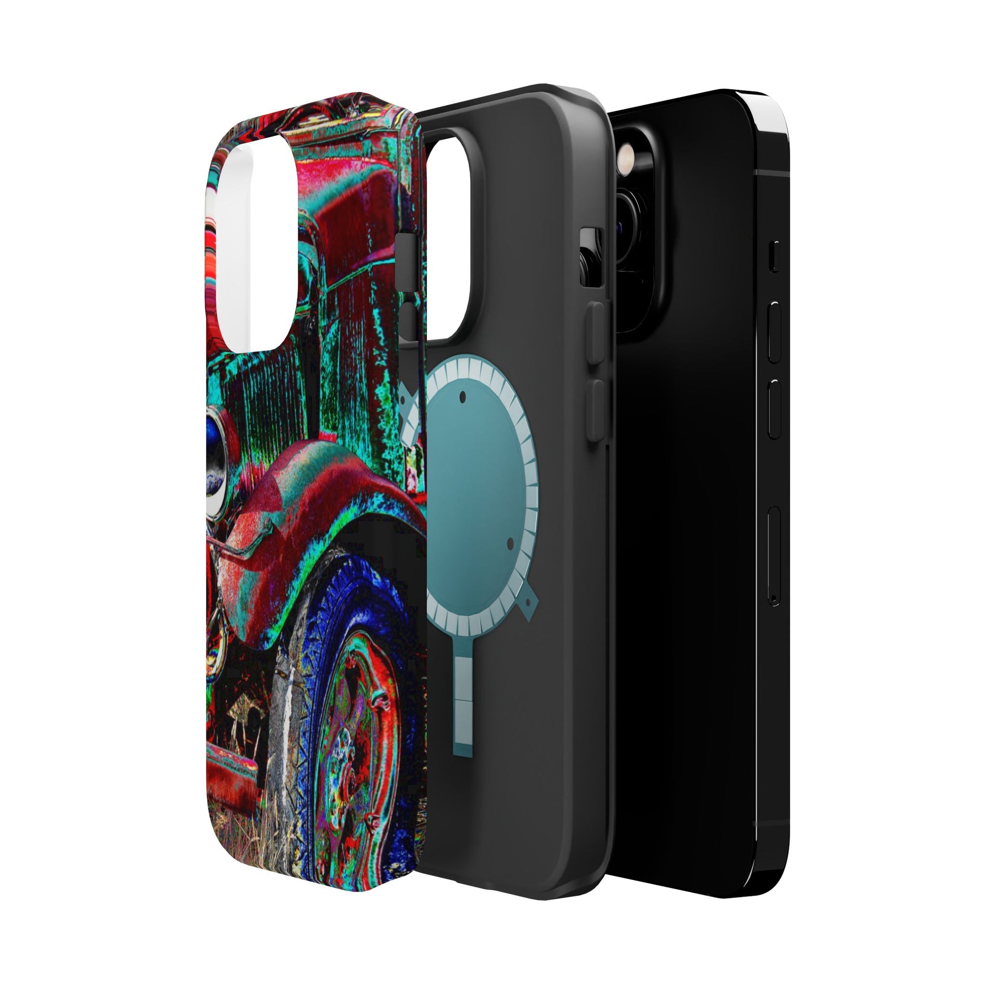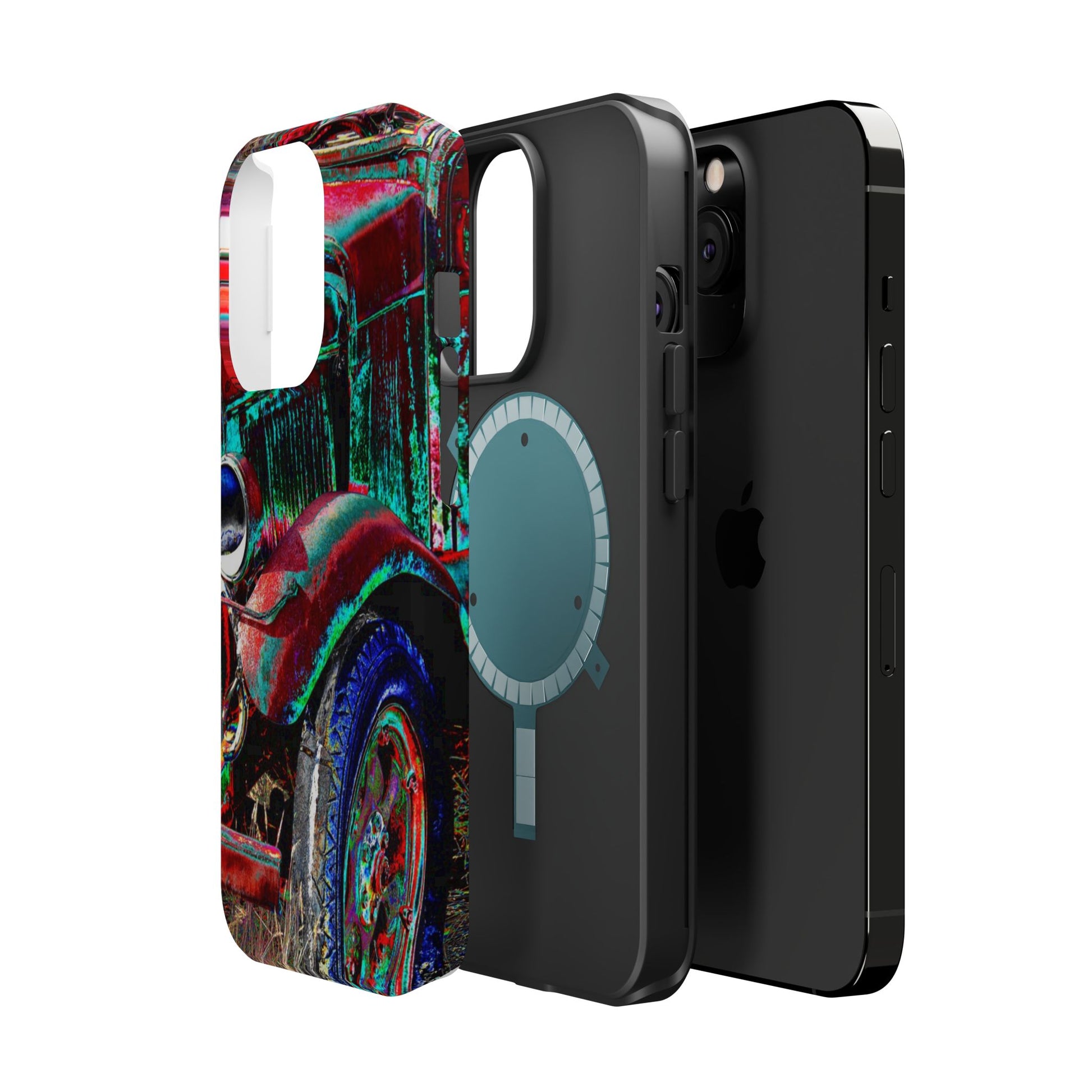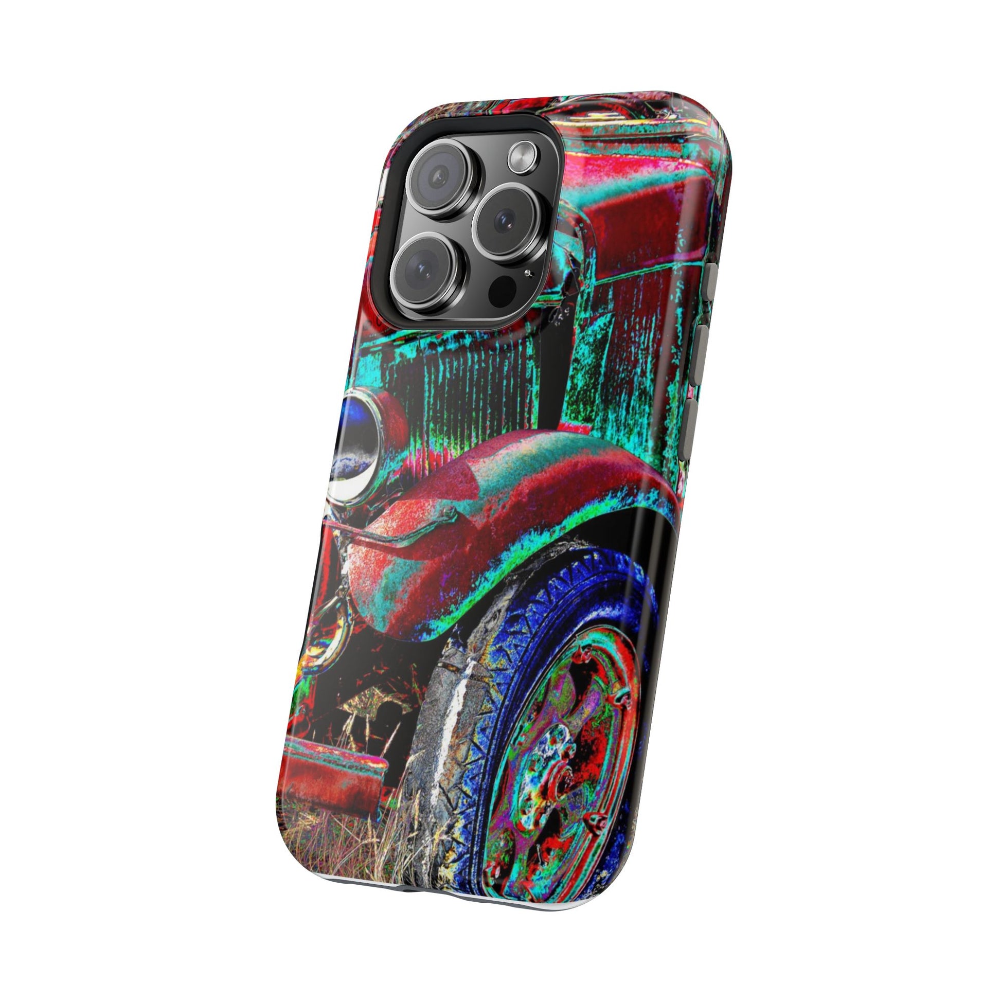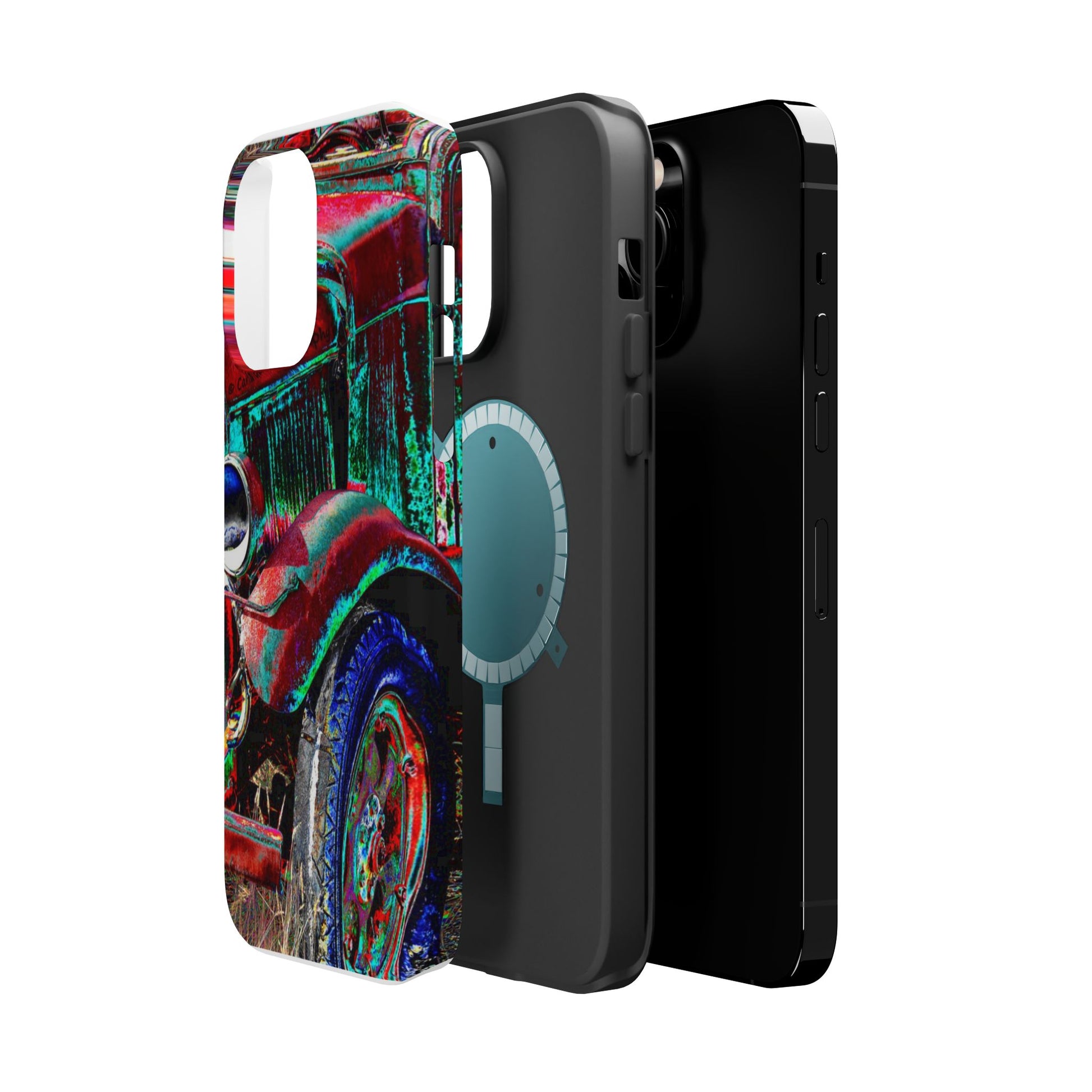 This impact-resistant phone case wraps your device in bold, artful protection. The full-wrap print showcases a vivid, distressed vintage truck motif rendered in saturated, photo-realistic colors that pop against glossy or matte finishes. A rigid polycarbonate shell with a cushioned TPU liner absorbs shocks while keeping edges and camera cutouts precise. Built-in interior magnets add MagSafe® compatibility for easy attachment and charging. Lightweight but tough, it’s made to stand up to daily knocks while turning your phone into a statement piece that reflects a love of retro style and high-contrast color storytelling.