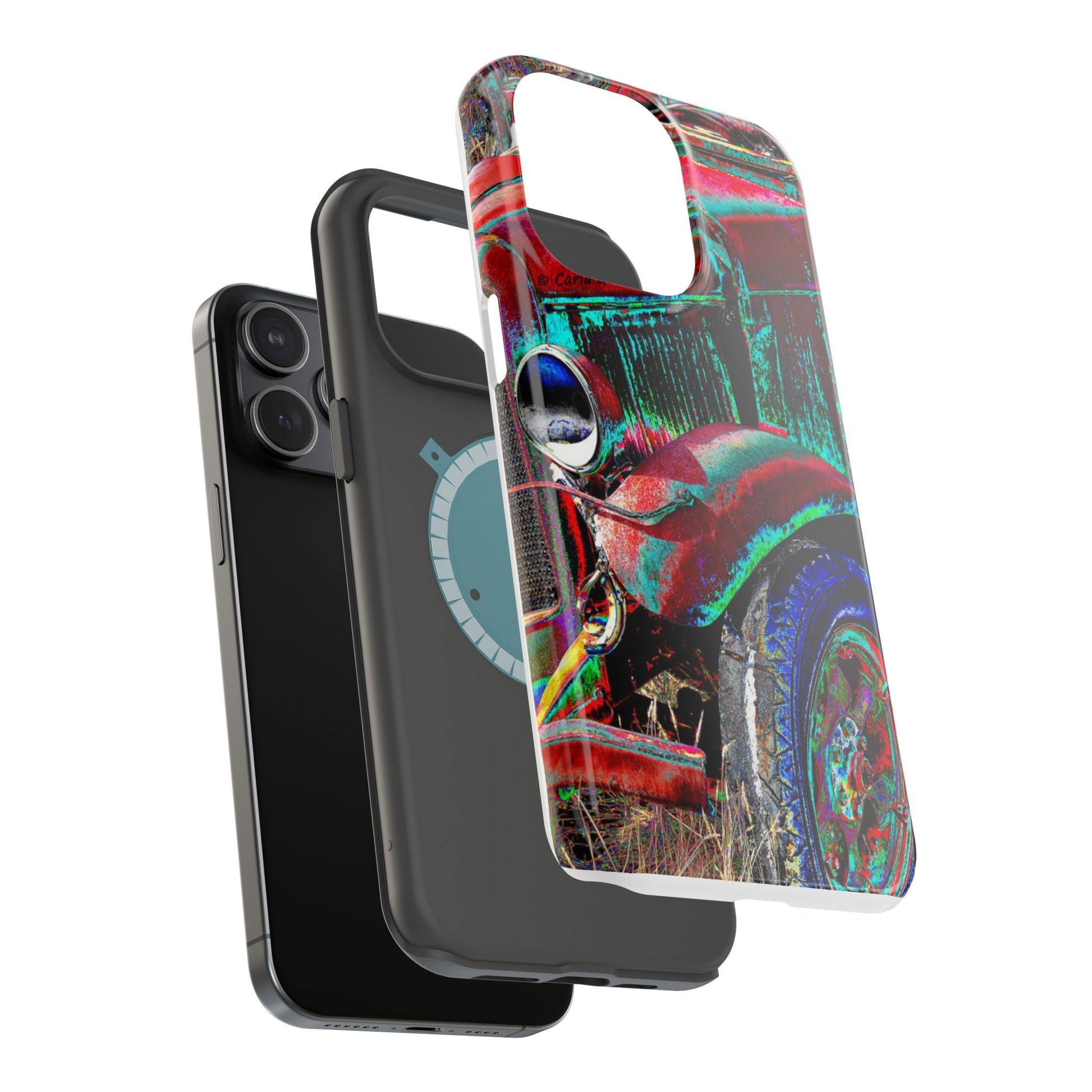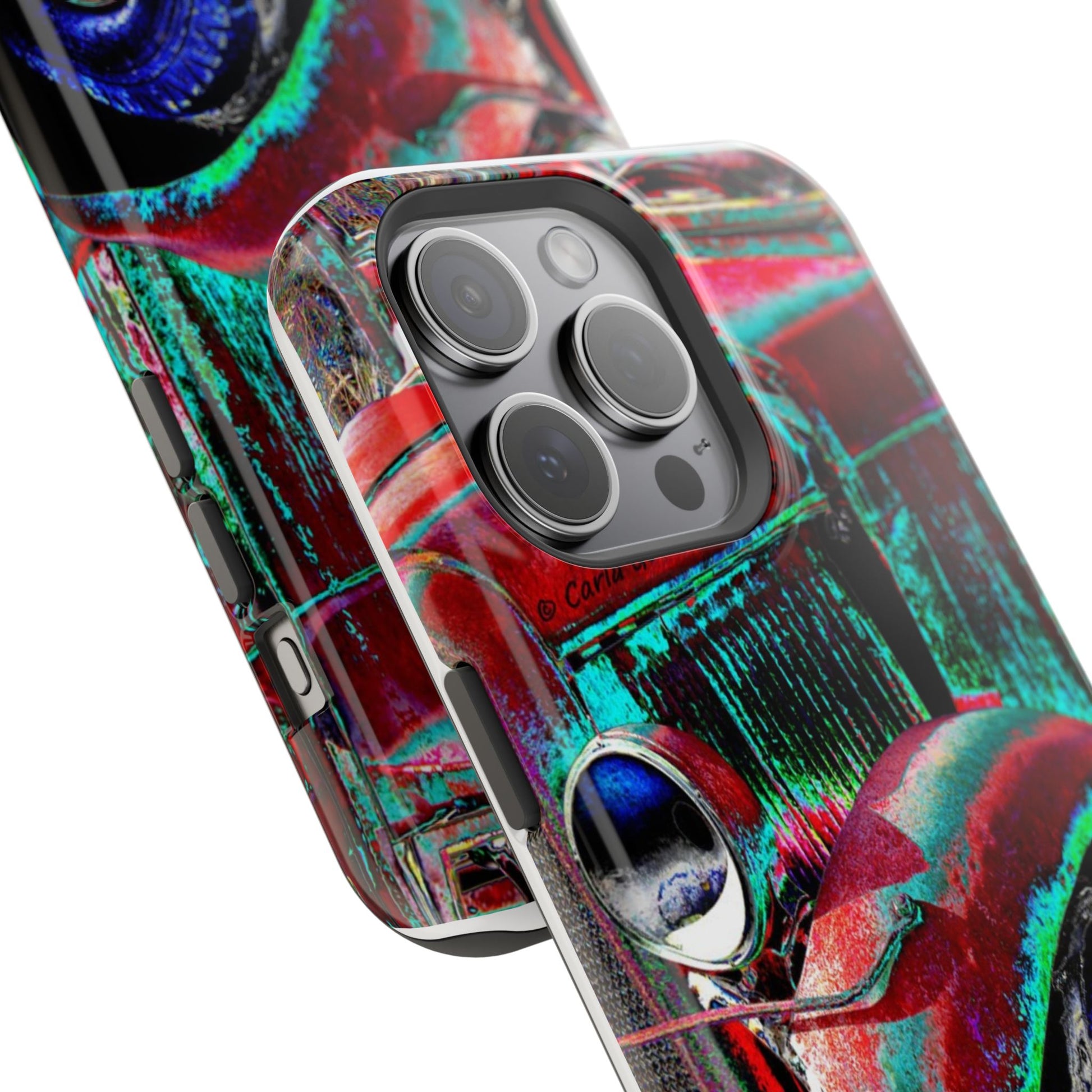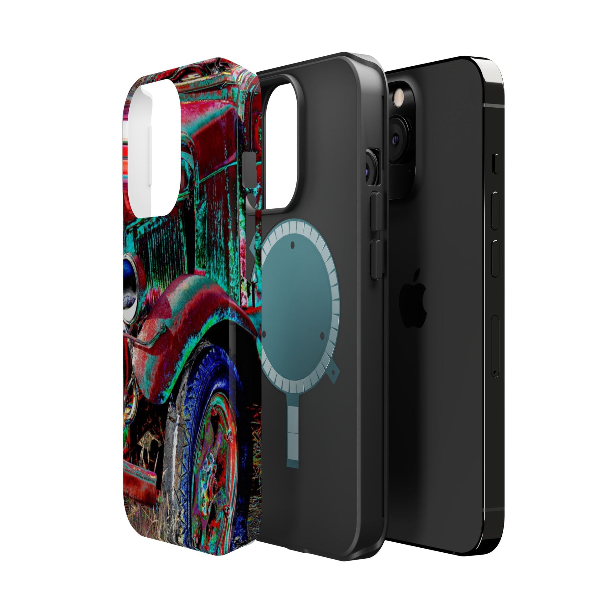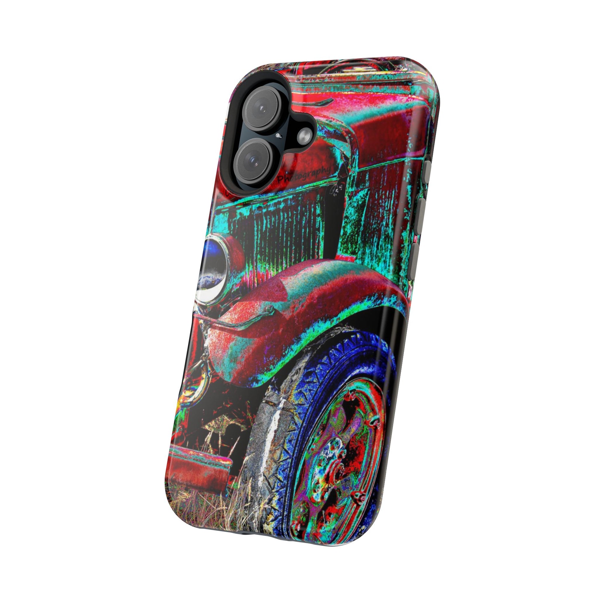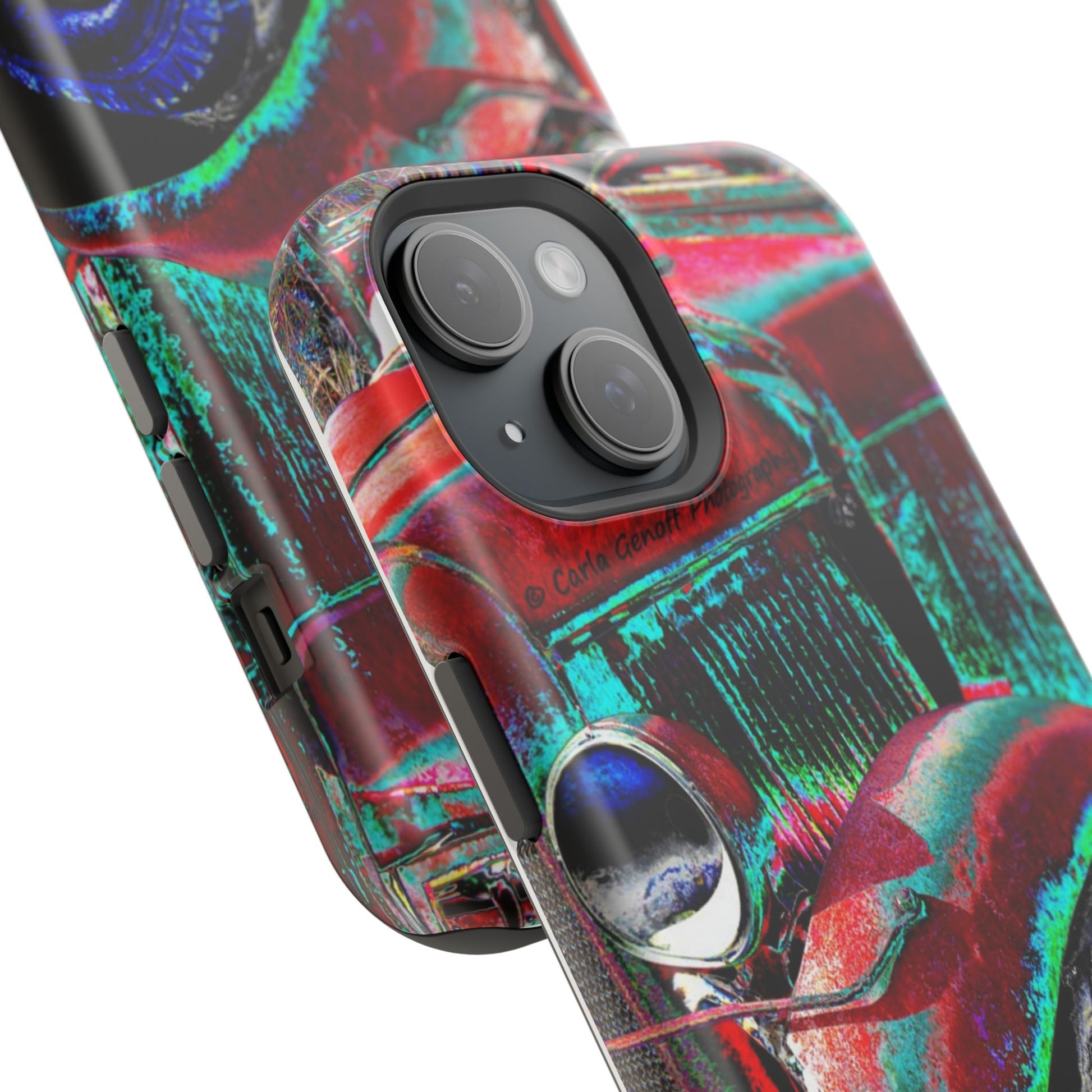 This impact-resistant phone case wraps your device in bold, artful protection. The full-wrap print showcases a vivid, distressed vintage truck motif rendered in saturated, photo-realistic colors that pop against glossy or matte finishes. A rigid polycarbonate shell with a cushioned TPU liner absorbs shocks while keeping edges and camera cutouts precise. Built-in interior magnets add MagSafe® compatibility for easy attachment and charging. Lightweight but tough, it’s made to stand up to daily knocks while turning your phone into a statement piece that reflects a love of retro style and high-contrast color storytelling.