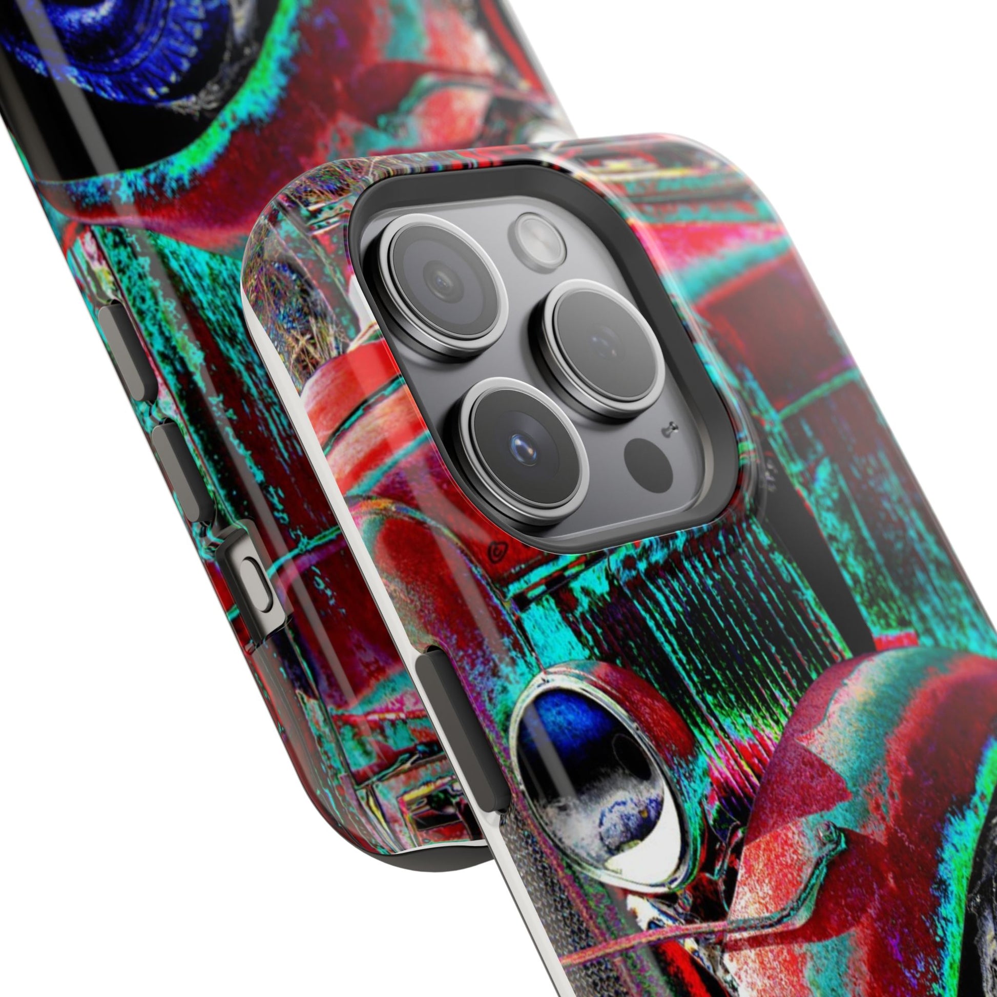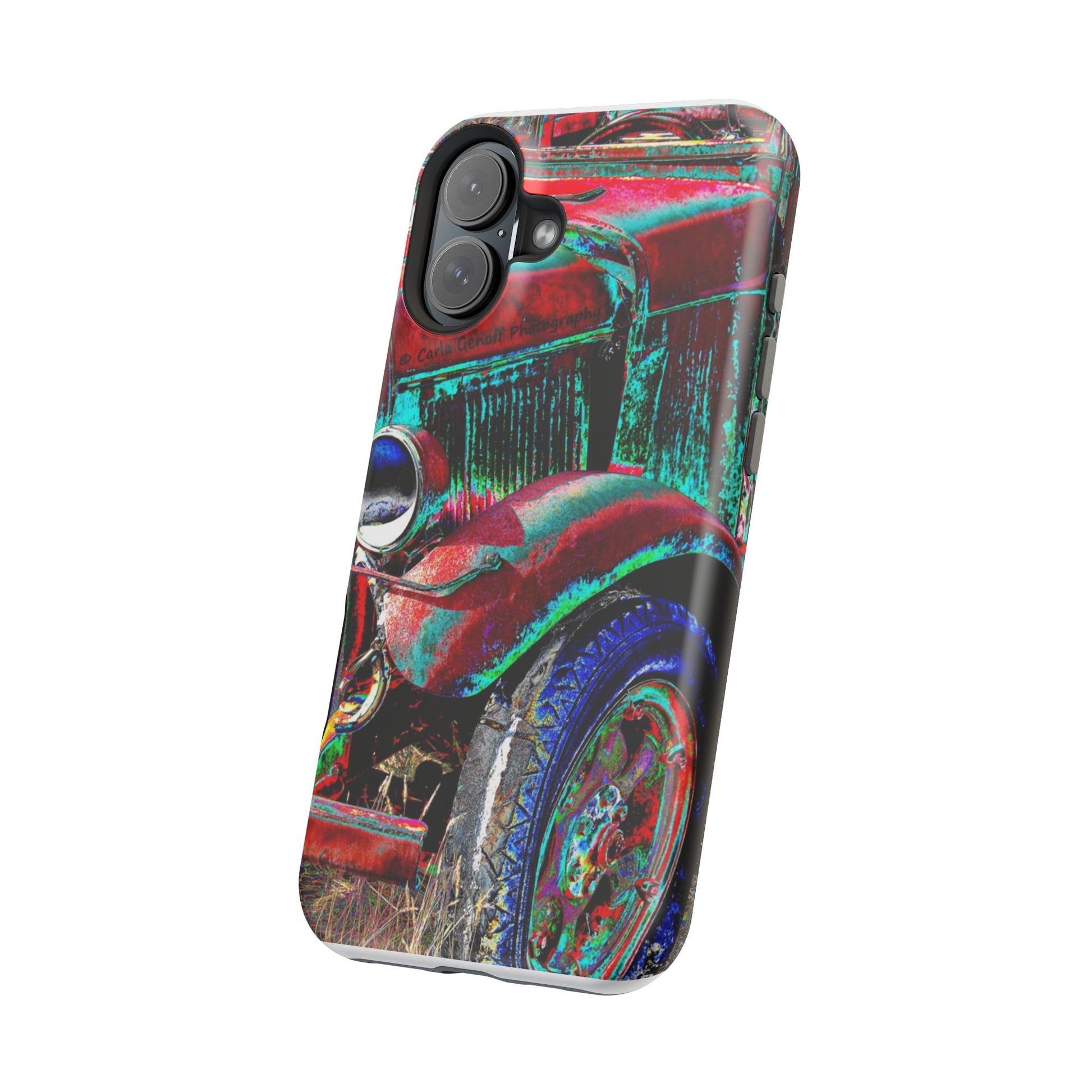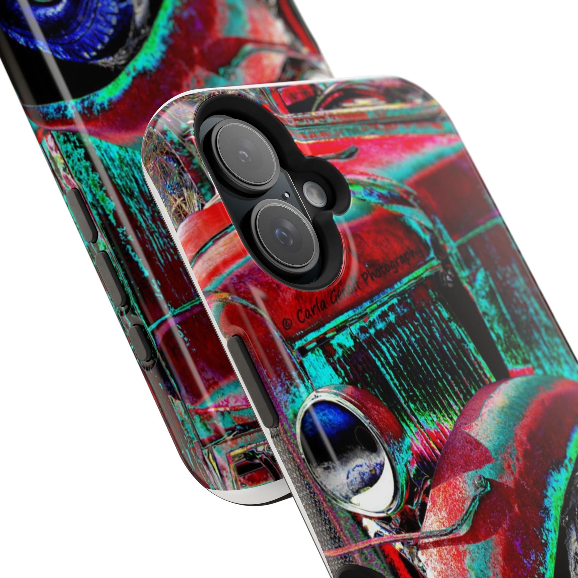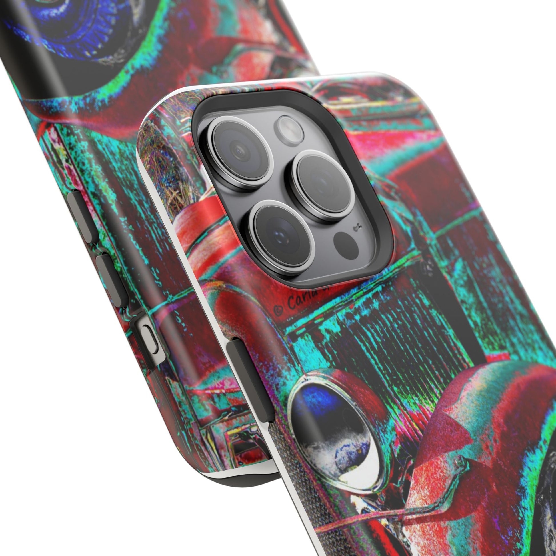 This impact-resistant phone case wraps your device in bold, artful protection. The full-wrap print showcases a vivid, distressed vintage truck motif rendered in saturated, photo-realistic colors that pop against glossy or matte finishes. A rigid polycarbonate shell with a cushioned TPU liner absorbs shocks while keeping edges and camera cutouts precise. Built-in interior magnets add MagSafe® compatibility for easy attachment and charging. Lightweight but tough, it’s made to stand up to daily knocks while turning your phone into a statement piece that reflects a love of retro style and high-contrast color storytelling.